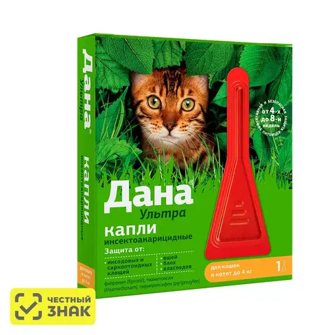 Препарат Дана Ультра применяют наружно путем капельного («spot-on») нанесения на кожу в места, недоступные для слизывания животным (область спины между лопатками или область шеи у основания черепа) в дозах, указанных в таблице:
