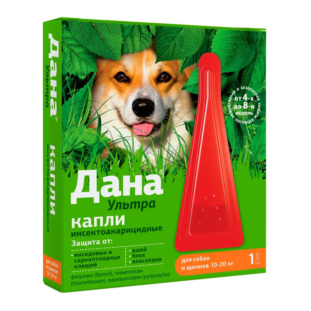 Препарат Дана Ультра применяют наружно путем капельного («spot-on») нанесения на кожу в места, недоступные для слизывания животным (область спины между лопатками или область шеи у основания черепа) в дозах, указанных в таблице:
