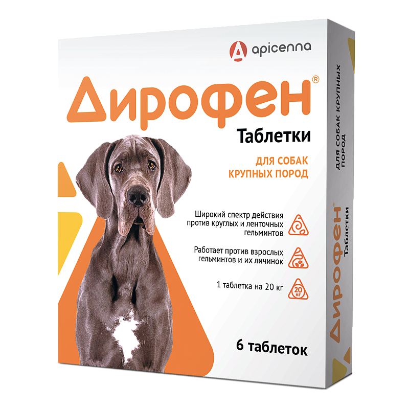 Дирофен таблетки назначают собакам с профилактической и лечебной целью при нематодозах (токсокароз, токсаскаридоз, унцинариоз, трихоцефалез, анкилостомоз), цестодозах (тениидоз, дипилидиоз, эхинококкоз, дифиллоботриоз, мезоцестоидоз) и ассоциативных нематодо-цестодозных инвазиях желудочно-кишечного тракта.